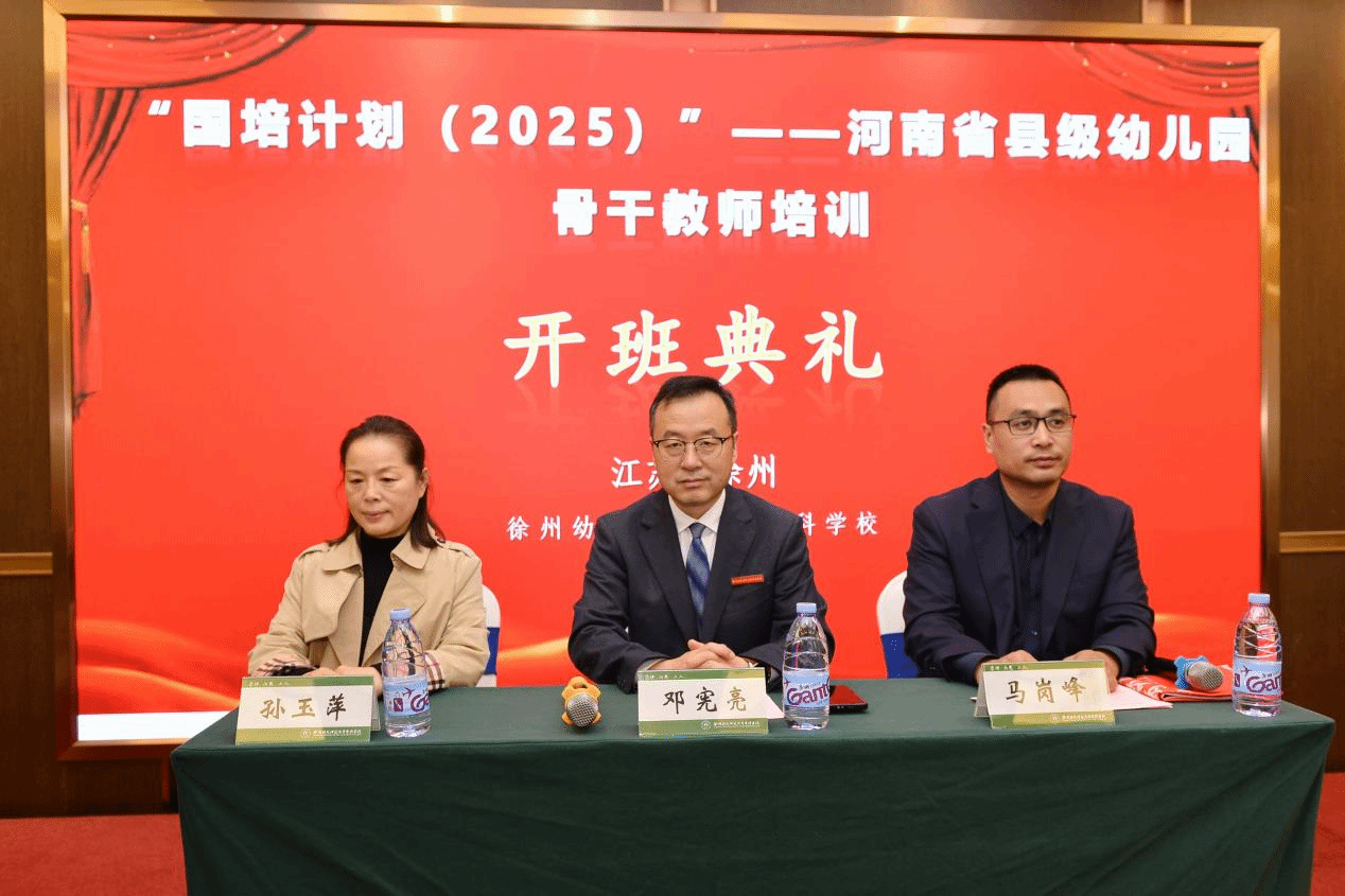 10月12日上午,我校在徐州锦江都成酒店二楼会议室举办了“国培计划(2025)”——河南省县级幼儿园骨干教师培训项目开班典礼,徐州幼儿师范高等专科学校党委委员、副校长邓宪亮,培训处副处长马岗峰、班主任孙老师以及来自河南省的50位骨干教师出席本次活动。典礼由马岗峰副处长主持。