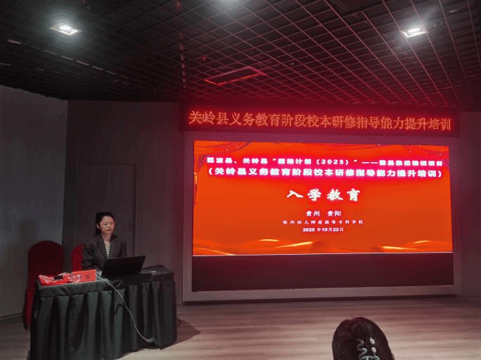 2025 年 10 月 22 日上午,我校在贵阳市万颐国际酒店隆重举行 “国培计划(2025)” ——关岭县义务教育阶段校本研修指导能力提升研修开班仪式。来自关岭县各中小学的教研队伍代表共85位参训学员出席仪式,开班仪式由李楚主持。